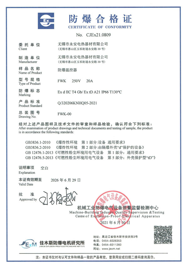 防爆证-防爆温控器
