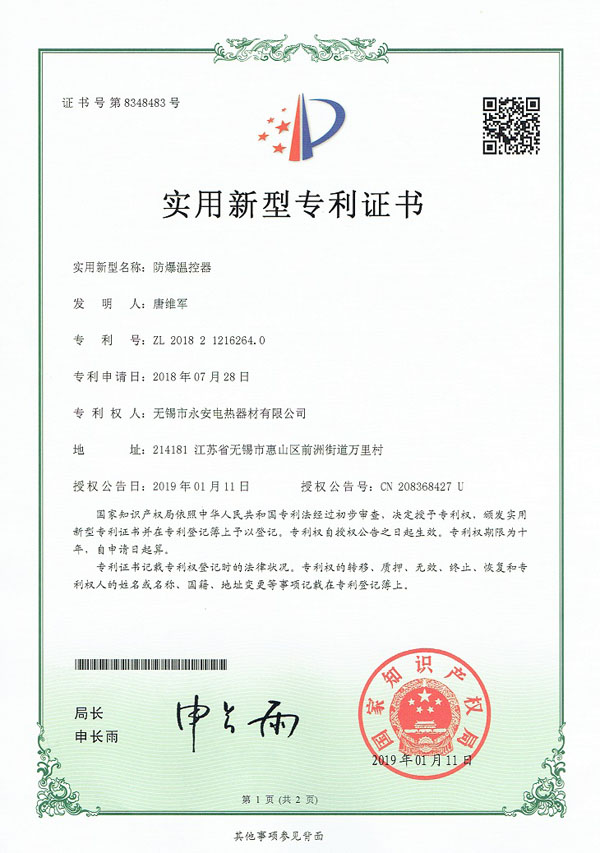专利实用-防爆温控器